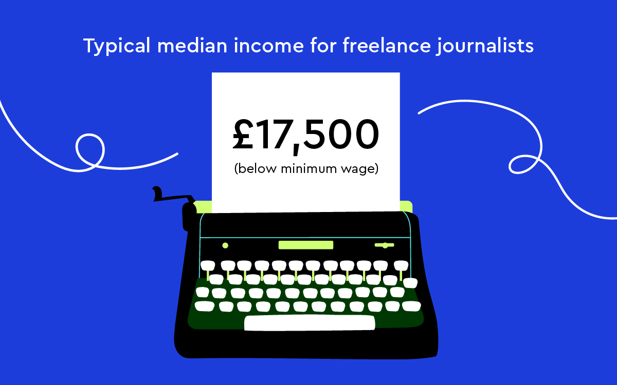 The report surveyed almost 500 freelance journalists in the UK to learn more about pay, contracts, working conditions and copyright issues. It found that median income for primary-occupation freelance journalists sits at just £17,500, a figure below the minimum wage, assuming a typical 35-hour work week.